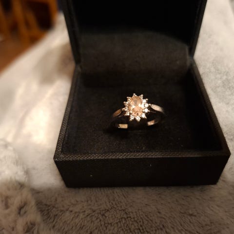 Ringen som er stemplet 925 er flott å se på. Ringstr er mellom 53 - 54. Selve rosetten, som minner om diamanter, er ant av zirconer eller bergkrystall. Den ringen vil få mange blikk. Flere spørsmål -send en melding. Ringen kan hentes i Oslo eller Helt Hjem hjelper deg med frakt.
