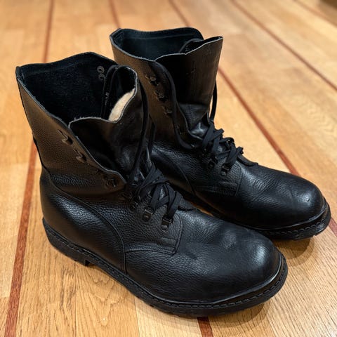 Ubrukte marsjstøvler/feltsko. Såler følger med.