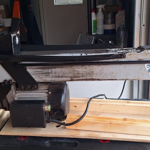 Hydraulisk vedkløyver til salgs. Er noe rust, men fult brukbar. Gi bud!