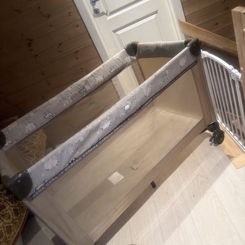 Carena reiseseng i svart farge. 120 x 60 cm, følger med madrass.