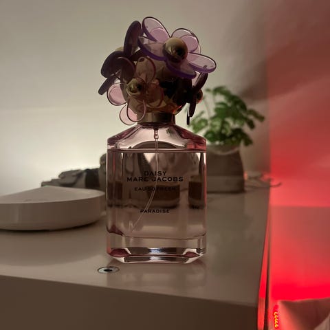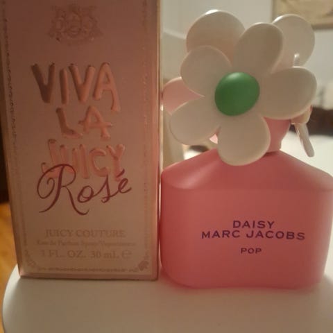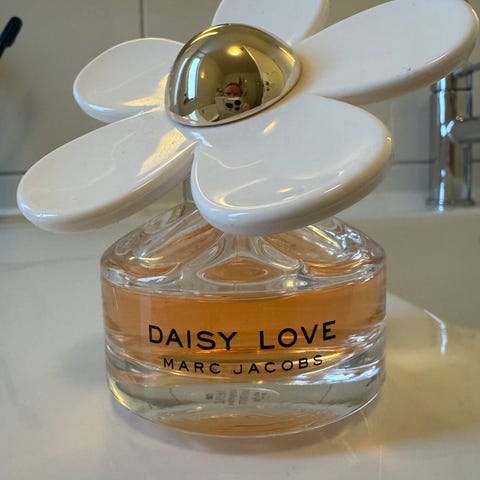 Selger en nesten ubrukt Marc Jacobs Daisy Pop parfyme i 50 ml flaske, rosa farge. Parfymen har en karakteristisk design med hvite blomsterdetaljer på korken.