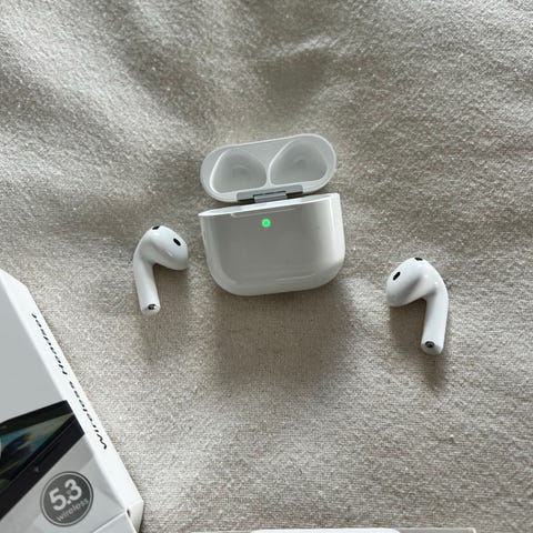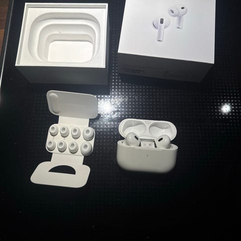 To par AirPods selges med lader om ønskelig. Det ene paret er defekt, i det andre paret fungerer ikke venstre AirPod med støydemping eller lydfremheving - blir skurring/knitring på toppen av lyden. Høyre AirPod fungerer som normalt. Selges hvis noen ser nytte i en høyre fungerende AirPod evt. deler.