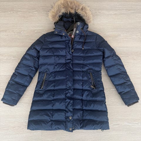 VaVite merke dunjakke i størrelse M for kvinner. Jakken er grønn og laget av dunmateriale, egnet som yttertøy.
