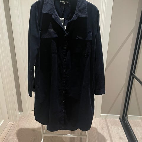Spencerkjole fra Marie Philippe str. 44, men liten i størrelsen, mer som 40/42. Uforet, men dobbelt stoff i overdelen. Kraftig, synlig glidelås i ryggen. Bryst 102, lengde 95, innsvinget.