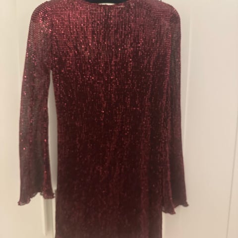 Vero Moda festkjole i størrelse XS, fargen er dyp grønn. Kjolen har lange ermer og et stoff som gir tekstur til plagget. Nydelig kjole selges. Splitt, og deilig stoff!