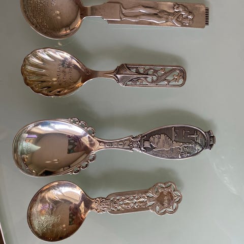 5 Pent brukte Norges skjeer kr 220. Stemplet 60 gram bak på skaftet