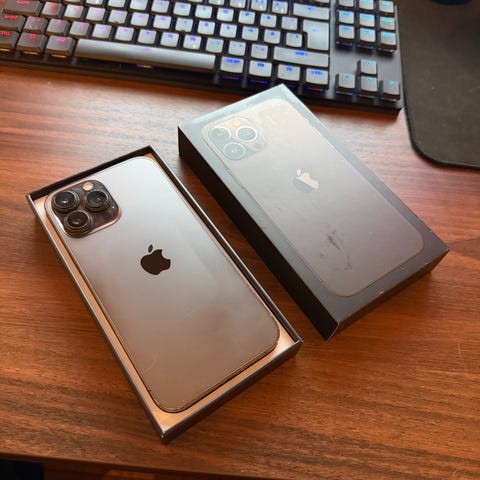 Selger min iPhone 13 Pro i fargen Gull. Dette er fortsatt en svært kraftig telefon med en nydelig 120Hz-skjerm og et kamerasystem som tar bilder i toppklasse.