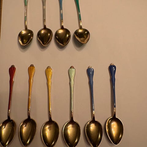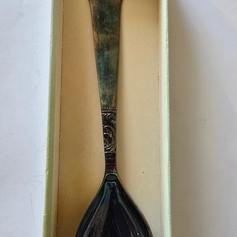 Selger min gammel tesil fra Sovjetunion. Det var godt brukt i Russland og flyttet med meg til Norge. I 1950 kostet den 80 kopeek Hadde sølvbelegg, men etter hard bruk sølvbelegg delvis forsvant.