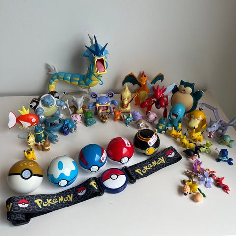 Samling av Pokémon figurer i ulike størrelser og farger. Figurenes materiale er plast. Egnet for samlere og fans av Pokémon-serien eller småfolk som liker å leke med de!