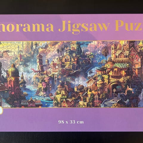 Panorama Jigsaw Puzzle puslespill med 1000 biter. Mål på 98 x 33 cm. Produktet er laget for å settes sammen til et panoramabilde.