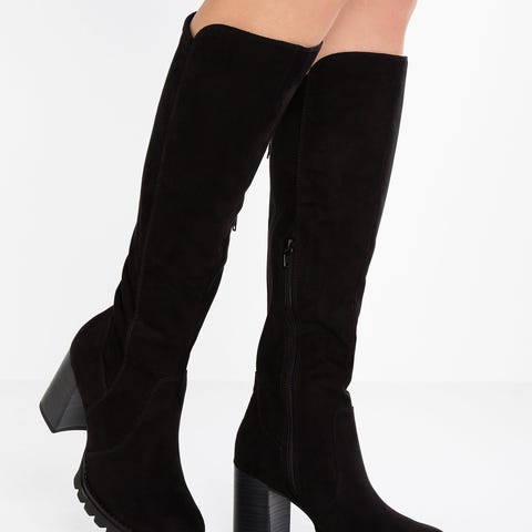 Støvlettene er 39,5 cm høye og helen 7,5 cm. Har kun brukt de 2-3 ganger, ikke noen skade på skinnet.