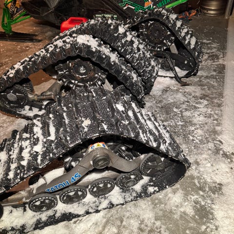Polaris beltekit selges da det ikke passet på vår atv. Disse er kjøpt brukt av meg, så jeg vet ikke hvilken atv monteringskit egentlig passer til. Beltene er godt brukt, med noen synlige skader og selges derfor uten noen form for garanti. Bør være flere gode år igjen for disse.