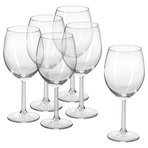 IKEA SÄLLSKAPLIG vinglass i sett med 4 stk. Glassene har et dekorativt mønster og er egnet for servering av vin og andre drikker.