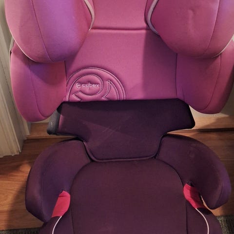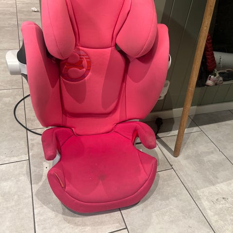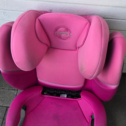 CYBEX Barnesete med en størrelse på 36 cm i rosa farge. Setet er designet for barn og gir støtte og komfort under bilreiser.