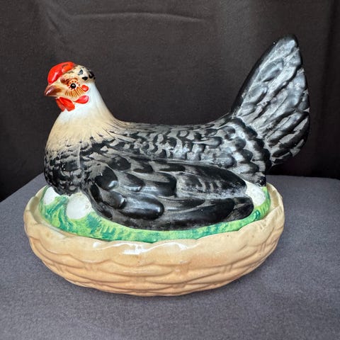 Stor nissekanne fra Porsgrund porselen til å ha rødsausen til riskremen i jula.