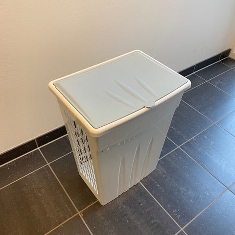 Selger skittentøykurv og wc rull holder,skittentøykurv er litt skeiv,kjøpt på megaflis