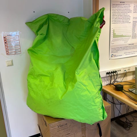 Myk pøff / saccosekk – grå/blå – komfortabel