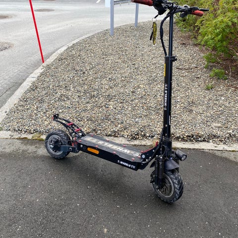 E-WHEELS E7 elsparkesykkel svart. Selger fordi den ikke brukes mere, ble kjøpt for ett år siden. Det er ny B kontroller og ny nøkkelstart. Det følger med lader og nøkler.