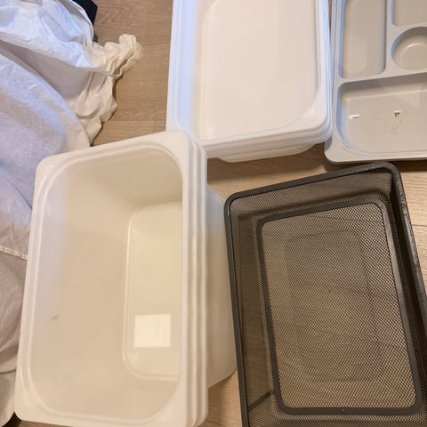 6 store plastbokser og 3 mellomstore og 4 små.