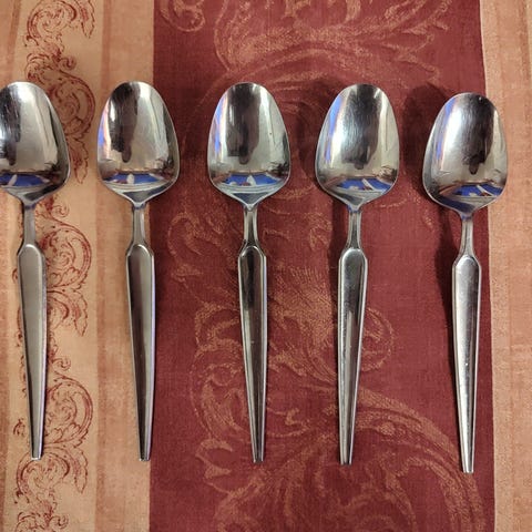 retro bestikk, vintage teskjeer, 70 tallet kjøkken, retro kjøkken, kaffeskjeer vintage, små skjeer stål