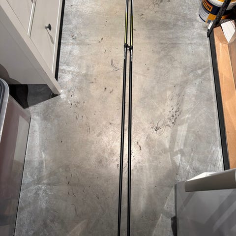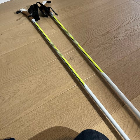 Pent brukte langrennsstaver i 150 cm. Slitesterke premium komposittstaver fra Swix Triac® Basket System (TBS) trinser. Komfortable håndtak i korkfilt thermoplastic og Pro Fit stroper.