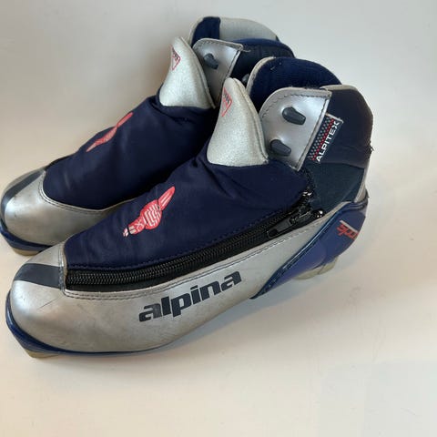 Alpina ST skisko. Usikker på størrelsen da merket har blitt slitt, men mener det er 37. Skiskoene har glidelås foran og er hele og fine.