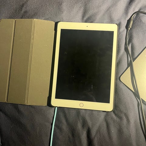 Apple iPad 5th generation nettbrett med 32 GB lagringskapasitet. Enheten har en skjerm med berøringsfunksjon og et frontkamera. Passer for generell bruk som surfing, lesing og applikasjoner.