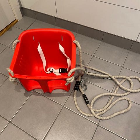Fantastisk huske som var elsket av våre to barn. Vi har mistet en tau men ellers perfekt. Tau er mindre rød enn før men ellers perfekt tilstand.