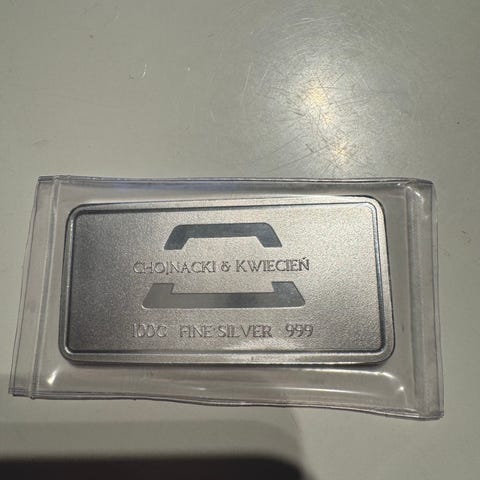 Prisen er satt. Denne barren tilhører en konfirmant og formålet er å finansiere førerkort. Pruting er ikke nødvendig, da den ikke må selges. Det er 40% differanse i sølvpris mellom USA og Asia, veldig stor volatilitet. Takk for interessen.