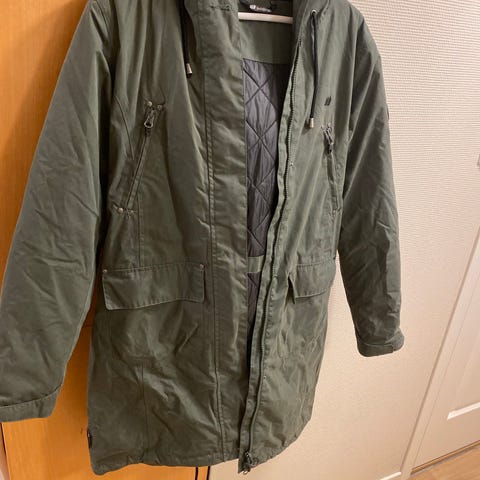 Skogstad Annet yttertøy i størrelse M for dame, i brun farge laget av polyester. Jakken har hette med avtagbar pelskant, flere lommer med glidelås og er designet for utendørs bruk.