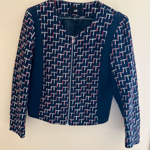 H&M blazerkjole i størrelse L Den har dobbelspent knappestilling og lommer foran. Silkeaktig i stoffet. Veldig pen!