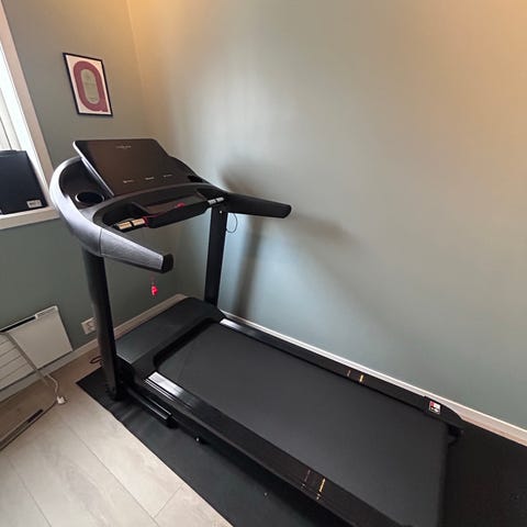 Solid tredemølle med DC-motor som passer til trening hjemme. Hastighetsnivå på 1-9 km/t. 10 stigningsnivåer og 25 programmer. Bluetooth-tilkobling. Vekt: 43 kg.