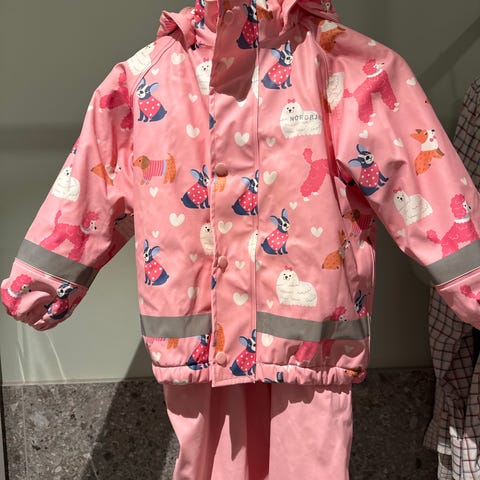 Vind- og vanntett Pallas fôret regnsett fra Nordbjörn med refleksdetaljer for ekstra sikkerhet. Perfekt for utendørslek i regnet.