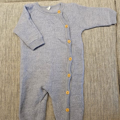 Joha ullfleece/ulldress i lys grå. Brukt tre ganger, da den raskt ble liten for baby.