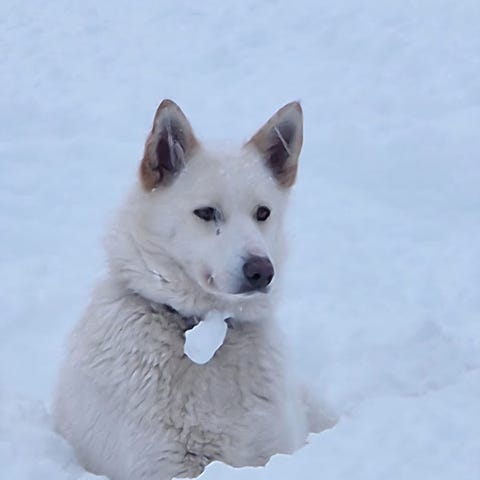 Hun er også en veldig usikker hund, tror det kommer av at tidligere eigere ikke var noe snill med hun. Hun kommer forresten fra noen hundekjørere i gudbrandsdalen, som pensjonert trekkhund.