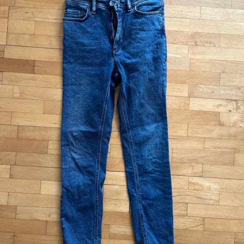 Acne Studios Blå Konst. Størrelse S med midjevidde W28. Lengde 32. Buksen er av vasket denim. Sitter som et skudd for den som passer i W 28:-)