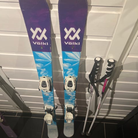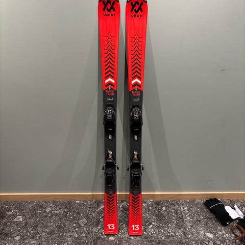 Völkl Racetiger SL Jr 100cm selges. God stand. Med Marker 4.5 bindinger som lett justeres til rett sålelengde uten verktøy. Marker lager markedets beste og tryggeste alpinbindinger.