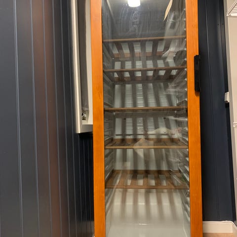 Vinskap fra Carrier, plass til 60-80 flasker. Må hentes.