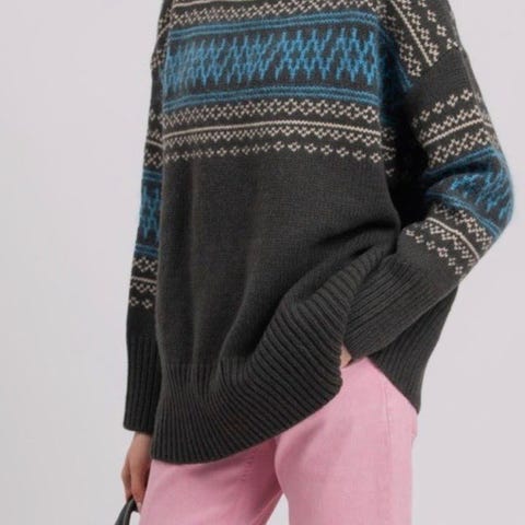 We Norwegians høyhalset genser i størrelse XS for kvinner, laget av 100% merinoull. Genseren er grønn og har en høy hals, egnet for kaldere vær og lag-på-lag bruk. Aldri brukt.