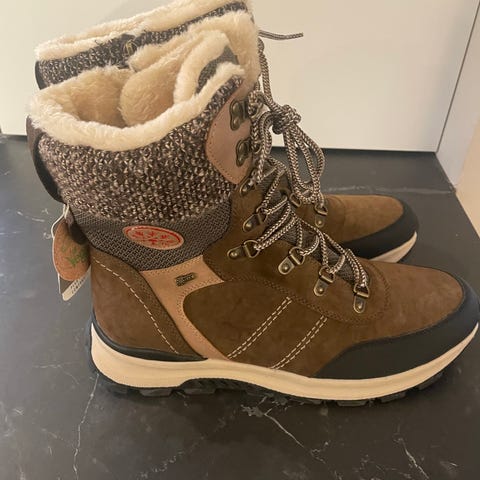 Vinterboots fra Eurosko. Brukt kun to ganger. Varm og vannavstøtende snøreboots fra Softwalk med glidelås på innsiden for enkel på og avtagning. Snøring for best tilpasning, og mønstret såle for godt grep. Den sporty bootsen er varmtfòret og har Softwalk by Relife, et patentert sålesystem for økt komfort. Softwalk modeller med Relife har ekstra støtabsorberende egenskaper, ekstra vide lester og optimal passform. Modellen har et varmt og godt fòr.