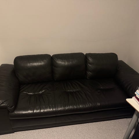 Behagelig skinnsofa selges. Trenger litt fiksing men er i ok stand.