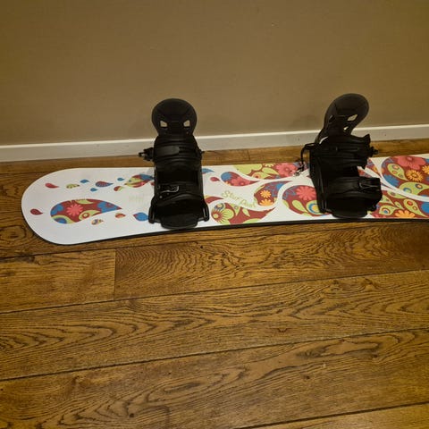 Rossignol snowboard utstyrt med bindinger og støvler i størrelse 39 (Euro). Støvlene følger med og er tilpasset for bruk sammen med dette brettet. Fin nybegynner pakke til barn!