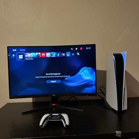4 mnd gammel PS5 disk med to kontroller og to spill.