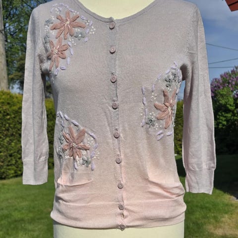 Silketunika i flotte farger med pålimte strassperler fra Nougat London. Står str. 2 på den. Tilsvarer S/M