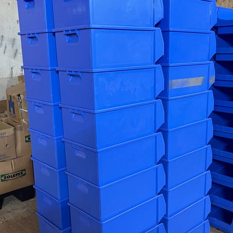 Blå plastpall med målene 150x150 cm. Laget av slitesterkt plastmateriale, egnet for lagring og transport.