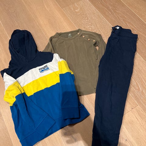 Klespakke til gutt: Hettegensere, joggebukser og strikkegensere str.128-140