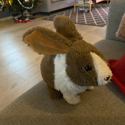 Div småleker, hunder og kanin med bur og utstyr.