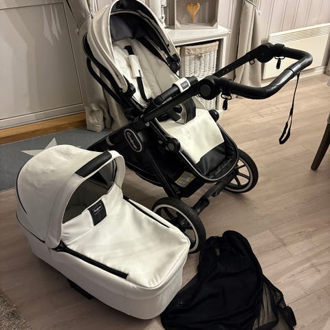 Emmaljunga nxt90 2021 model kjøpt i 2020 kombivogn liggedel og sittdel. Brukt av 2 barn. Vognen har justerbart håndtak og enkel å slå sammen. Sittedelen har flere posisjoner for sete og er romslig. Den har sikkerhetsele og avtagbar beskyttelsesbøyle. Det er kjøpt nye beskytter til skulder, da de andre ble små. De er merke ygrid.
