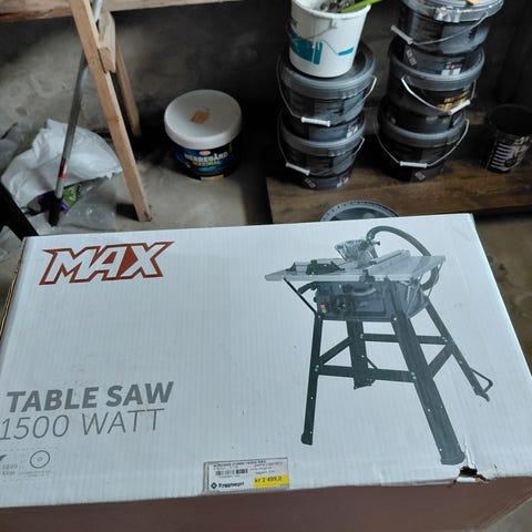 Lite brukt Proofy bordsag, med originalt tilbehør. Tre plater som kan monteres for å få en større arbeidsflate, justerbar breddemåler mm. Nytt (?) sagblad medfølger. Mangler beskyttelsesdeksel over sagbladet. Høyde, arbeidsflate: 89 cm. Hentes i Moelv.