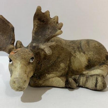 Mangler venstre gevir. Lengde 15 cm Høyde ca 11 cm bredde ca 6 cm